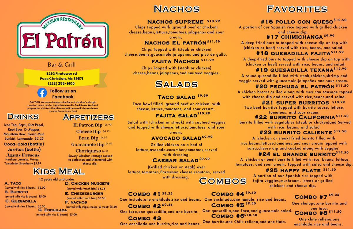 Welcome to El Patron - Pass Christian, your go-to destination for authentic Mexican cuisine in Pass Christian, MS. Located at 8292 Firetower Rd, this gem offers a vibrant menu that caters to every palate.